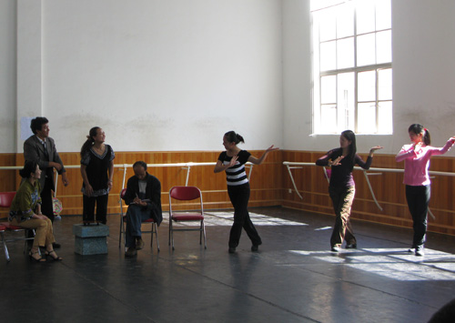 上戏“牵手云南文化志愿行”团队抵达云南省楚雄市已有十多日。在这些时间的紧张排练与相互切磋下,我们于8月20日上午进行了汇报演出,云南方面前来观摩汇报的领导有:楚雄彝族自治州文化局善承卫副局长,楚雄民族艺术剧院邱卫东院长、艺术剧院各艺术团团长及本次活动协办单位兴业投资股份有限公司的领导。我校出席的同志有:校团委书记陈云、副书记徐晶,导演系支部书记眭慕蛟等师生。此次参演的剧目有新编传统滇剧《金莲喋血》,彝剧小戏《农家乐》、《小广告》,民乐合奏《彝家乐》、《阿苏召》、《彝山风》等。