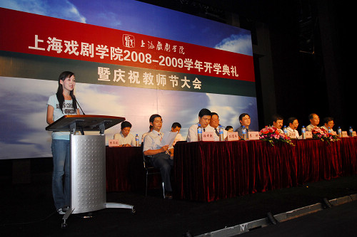 2008年9月9日,我校开学典礼暨庆祝24届教师节大会在上戏剧院召开。校党委书记贺寿昌、主持工作副院长韩生、副书记兼副院长葛朗、副书记楼巍、副院长刘志钢、副院长孙惠柱、院长助理兼戏曲学院院长徐幸捷出席了此次会议。参加会议的还有:学术委员会主任叶长海、表演系系主任龙俊杰、导演系系主任卢昂、舞美系系主任刘永华、戏文系主任陆军、电视艺术学院主持工作副院长赵韫颖、舞蹈学院院长陈家年、创意学院支部书记孙建华、公教部主持工作副主任陈敏、教务处处长陈其毅、学生处处长邱中岳。全体08级新生、老生代表、辅导员代表、教师代表、全体中层干部参加了会议。会议由孙惠柱副院长主持。