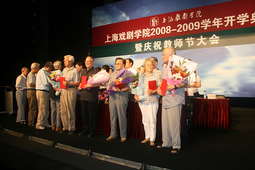 会议首先由贺寿昌书记讲话,并表彰我校从事话剧事业50年以上的教职员工;由刘志钢副院长宣布我校至2008年男满30女满25教龄工龄的名单;由葛朗副书记宣布关于表彰我校参加奥运会活动人员的决定、关于表彰我校2007――2008学年优秀班主任的决定;由楼巍副书记宣布2007――2008我校教职工获各类省市级以上的荣誉称号名单。本科生代表、研究生代表、老生代表、教师代表纷纷上台发言。