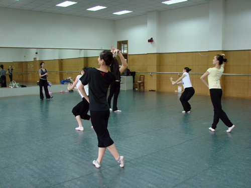 图为我校舞蹈学院副院长李海霞正在指导排练赴美演出的节目