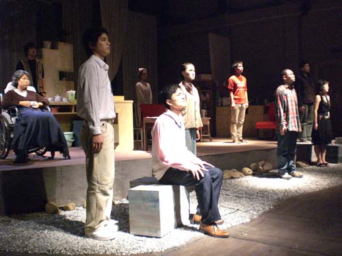昨日下午3:00,上戏新实验空间剧场座无虚席,导演系06级排演剧目即首部实习大戏《影子盒》在这里公演。作为首场演出,《影子盒》吸引了上戏众多师生,同时,上海师范大学、东华大学、上海理工大学等也有学生剧社、学生代表前来观看首场《影子盒》,现场气氛热烈。