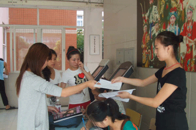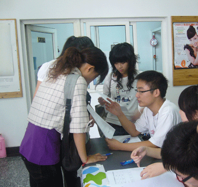 中午时分,大量同学来到招新现场报名,报名的同学以08级新生为主。为了方便前来咨询的同学,并能够就疑问予以及时解答,院学生会、社团联派出各个部门的部长、副部长与同学进行一对一的交流、沟通,就相关部门的工作内容、工作职责、工作权限等向前来报名的同学进行解释,使同学们更加了解学生会,更有利于结合自己的兴趣进行填报。学生会成员耐心的讲解赢得了前来报名的同学们的信任,而同学们的踊跃与热情也深深感动着每一位在场的学生会成员。