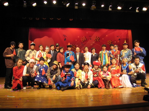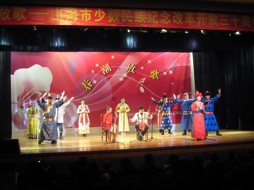 日前,我们表08内蒙班的全体同学在上戏统战部黄桂英部长和内蒙班班主任旭光老师的带领下,代表上海戏剧学院参加了在华东师范大学举办的上海市改革开放30年少数民族联艺会。这次联艺会的演出队伍庞大,场面宏观,成为了一次56民族的大聚会。参加演出的队伍中有维吾尔族、蒙古族、藏族、回族、苗族、壮族、朝鲜族等等。