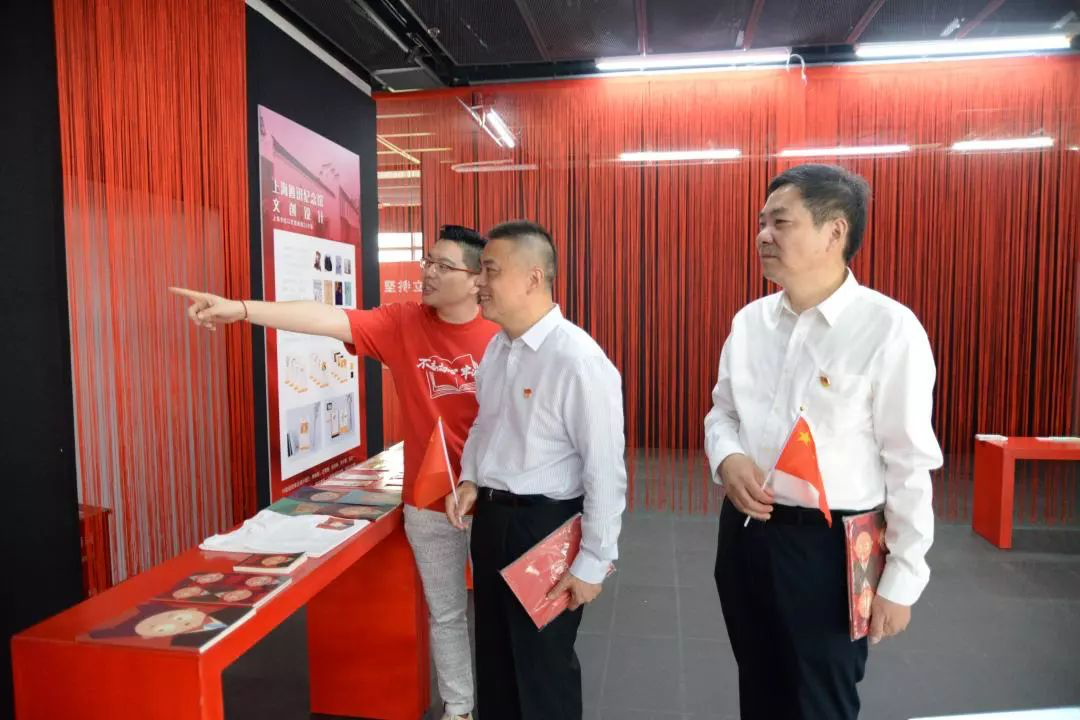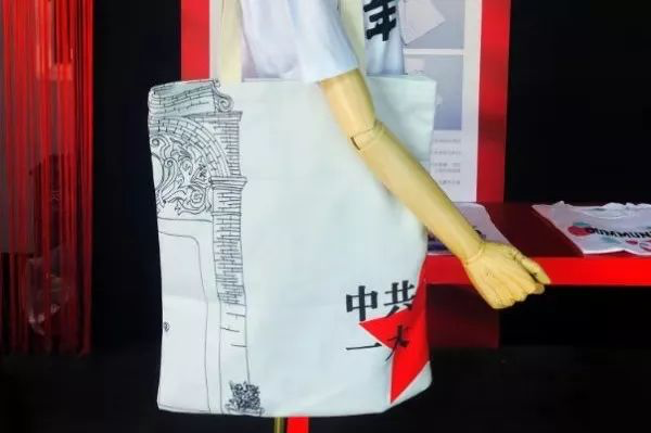 创意学院视觉传达设计专业的陈晔老师主讲的《设计原理》《视觉设计工作坊》,艺术管理专业的黄墨寒老师主讲的《策展与视觉艺术管理》《演艺制作专题》等课程率先进入整合平台。在授课的过程中,教师组织学生们分别走进中共一大会址、二大会址、龙华烈士纪念馆、周公馆、田汉寓所等上海部分红色文化纪念地(也包含部分海派文化、江南文化场馆),指导他们从中开掘设计要素,获取设计灵感,并最终形成各类文创作品,包括T恤、包袋、日历、笔记本等多种形式,以及3D打印水杯和手机APP。红色历史以当今时尚的文创方式走进了生活,走进了青年,成为可感知、能感动、有温度的思政。本次展览还实现了视觉传达设计与艺术管理两个专业的联动,这也体现了课程思政平台所实践的不同课程、各个教师、各类成果充分整合,共同推进思政教育的理念。
