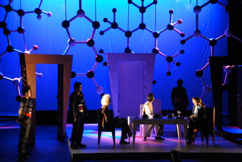 最近一部又一部优秀的戏剧作品在我校上映,从12月16至20日在端钧剧场上演的《物理学家》,是表演系舞美系05级本科毕业班带来的演出。此剧从某精神病院里接连发生的谋杀案开场,被害人都是本院的女护士,凶手都是她们所护理的病人,案情扑朔迷离、奇险诡异,而在荒诞的表象下却隐藏着严谨缜密的内在逻辑,随着剧情深入,抽丝剥茧,层层揭秘,昭示出振聋发聩的宏大主题:在权利纷争的当今世界,尖端科学技术其实是一柄双刃剑,它可能造福于人类,也可能给人类带来巨大的灾难。正直的科学家为保持良知,坚守对全人类命运的关爱,不惜牺牲家庭、爱情、自由和自己的一切。