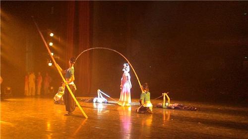 图为古典舞群舞《龙飞凤舞》在辽宁大剧院走台