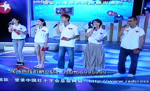 台湾地区遭遇8月8日的强台风袭击后,全国人民纷纷伸出援助的手。今天(20日)晚上,东方卫视、深圳卫视、湖南卫视、天津卫视、浙江卫视、江苏卫视等电视台联合举行了大型的“跨越海峡的爱心”赈灾义演活动。在长达四个多小时的义演中,很多企业和个人都捐款资助受灾同胞,很多演艺界人士都担任电话接线员,为灾区人民做贡献。