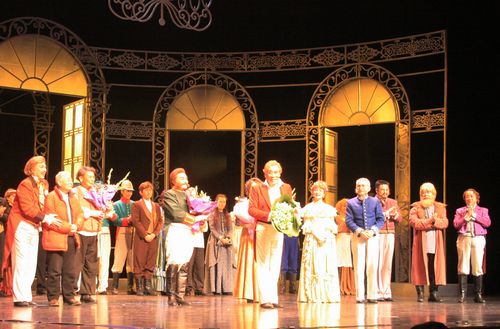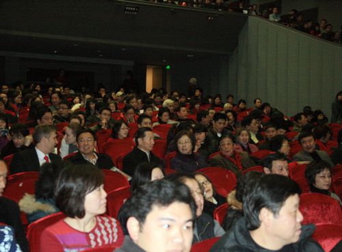 昨日(1月3日)晚上,由我校表演系59届校友推出的俄罗斯喜剧《钦差大臣》继续在上戏剧院上演。全国人大常委、全国人大教科文卫委员会副主任委员金炳华,上海市委副书记殷一璀,市委宣传部副部长陈东以及俄罗斯驻上海常务副领事柏福德等领导和外宾莅临我校,在我校领导楼巍、韩生的陪同下观看了本场演出。演出间隙,一璀书记亲切询问了我校的发展和演出场地建设等情况并接见了本剧的演职人员,当得知我校已有四个剧场可供演出并与话剧中心、儿童艺术中心等组成了上海戏剧大道时,表示上海戏剧大道的平台很大,机会很多,上海戏剧学院一定要发挥自身优势,利用良好机遇,为上海城市文化的大发展作出更大的贡献。俄罗斯驻上海常务副领事柏福德在观看了演出之后,表示《钦差大臣》是一部很好的戏剧,虽然果戈里的作品已经百年的历史,但是至今仍有现代的意义,希望今后能够排演更多现实主义作品,并向《钦差大臣》剧组发出了参加俄罗斯“汉语年”演出的诚挚邀请。(文/白水 谷晴 图/谷晴 编辑/谷晴)