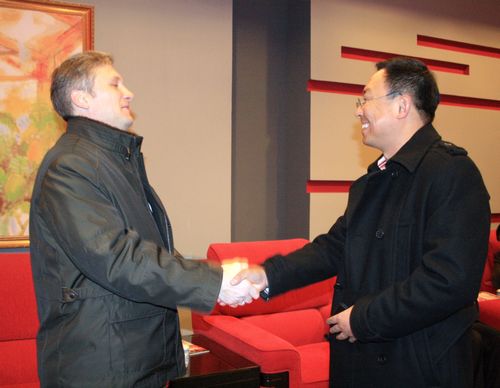 图为楼巍书记与俄罗斯常务副领事亲切握手