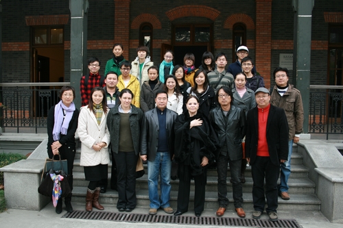 厉震林教授首先代表上海戏剧学院欢迎以色列专家的来访作开场发言,向各位以色列专家介绍上海戏剧学院的历史沿革和现状。接着,由以色列列电影、戏剧界著名演员吉拉•阿尔玛戈讲述以色列电影和戏剧发展史,分别就演员的生存状态、政府对电影和戏剧的政策及自身的从艺经历等方面让大家对以色列电影和戏剧有了大概的了解。《戏剧艺术》主编曹路生教授就吉拉•阿尔玛戈此次来中国参加国际戏剧节的演出作品分享自己的观后感,并向来访的专家赠送载有以色列当代戏剧作品的《戏剧艺术》期刊。厉震林教授代表校方向以色列的客人赠送礼品,并在佛西楼前合影。