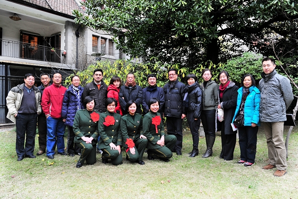图为退伍女兵与领导和老师合影