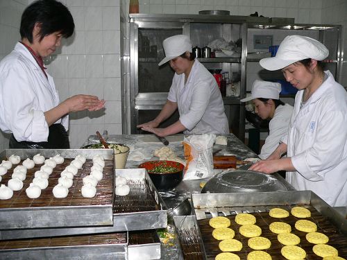谈及这次烹饪考评的由来,作为专管食堂工作的徐军老师感慨颇多。他说,自1992年他接管食堂至今,已经走过了十六个年头,而食堂的工作人员也逐渐由壮年走入了迟暮。食堂的工作非常繁重辛苦,需要强劲的体力,所以工作人员的平均年龄都在三十五岁左右,而他希望他们都可以坚持工作十年之久。这样我们的同学在四年本科,三年研究生共七年读书生涯里,可以一直感受到食堂的伙食平稳发展,而不会出现突然的断层。为了保持食堂队伍的战斗力,解决人才青黄不接的局面,改善结构老化的状况,经各位老师领导的商量,决定通过这样一次烹饪的考评活动,对现在的人员进行一次大练兵,选拔出优秀的工作人员,作为后续力量的补充,增强大家的竞争意识。