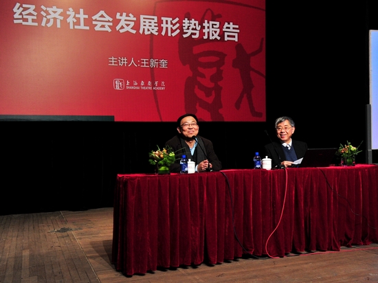 今天(12日)上午,我校在新空间举行经济形势报告会。著名经济学家、上海市工商联主席、原上海市政协副主席、原上海外贸学院院长