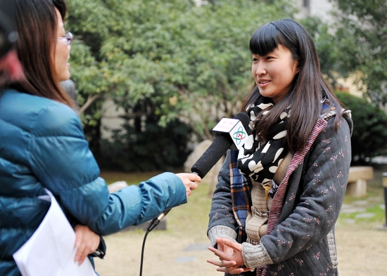 央视记者首先在院办前草坪采访了08表演的王俊东、08戏文的饶俊、07舞台设计的张玉婷和07戏文的图力古尔四位学生。他们都是品学兼优的特困生,国家和校内奖助学金帮助他们免除了学费高昂的后顾之忧。