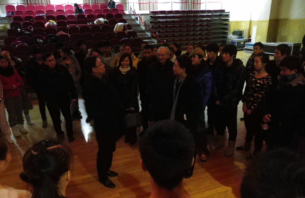 为了一个共同的目标,舞蹈学院领导亲力亲为。协调和安排好排练的每个环节。为了一个共同的目标,该剧制作人翁增辉老师也是全情投入,从音乐制作、舞美、排练进度、剧本修改、创作研讨等方面做了细致入微的协调安排。