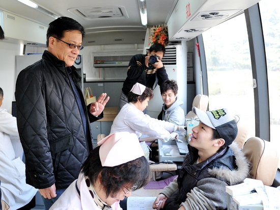 3月16、17日我校华山路校区和莲花路校区的两百余名同学参加了无偿献血活动。上海戏剧学院院长韩生、副院长刘志钢、副院长宫宝荣、校务委员会副主任葛朗等校领导分赴各个献血点慰问同学,学生处(主持工作)副处长徐咏、团委书记陈云等老师为献血同学发放了牛奶、巧克力等营养品。义务献血车上下秩序井然,同学们面对义务献血活动踊跃而又兴奋,志愿者无微不至服务献血同学。