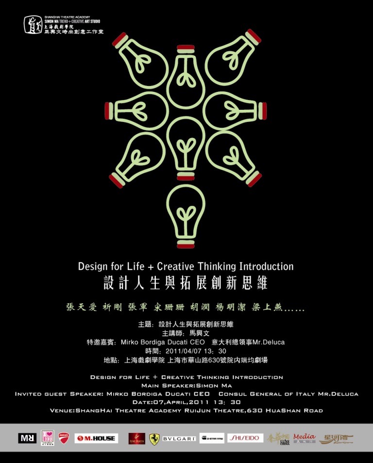 据悉,4月7日下午1:30,一场名为“设计人生与拓展创新思维”的主题讲座将在端钧剧场开讲。该讲座由我校和马兴文时尚工作室联合主办。