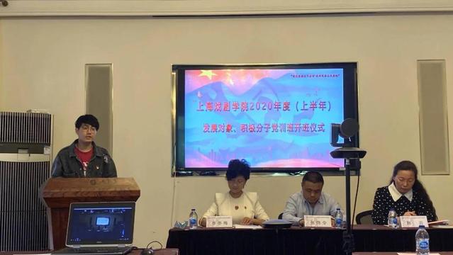 2020年5月12日下午,上海戏剧学院2020年上半年发展对象、积极分子党训班开班仪式以“线上直播+线下学习”的方式在佛西楼二楼西会议室举行。上海戏剧学院党委副书记、副院长张伟令老师;组织部部长、人事处处长、教师工作部部长陈云老师;学工部部长李冬梅老师;团委书记、学工部副部长徐晶老师;组织部干部曹颖老师;学生党总支负责人薛嘉老师以及各院系辅导员线下参与了本次开班仪式,入党积极分子77名同学,发展对象27名同学在云端一同参与。