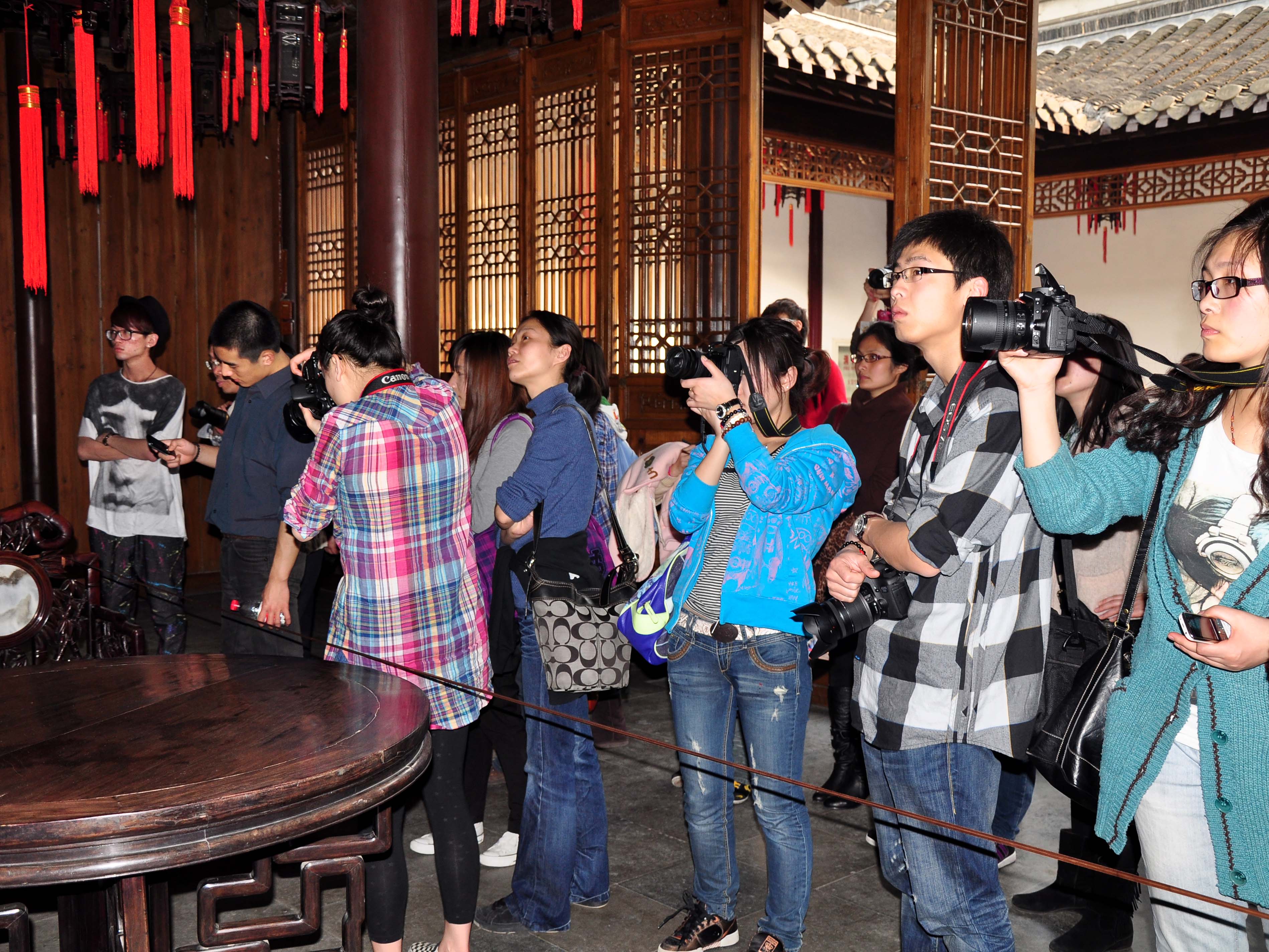 图为学生记者在个园采风