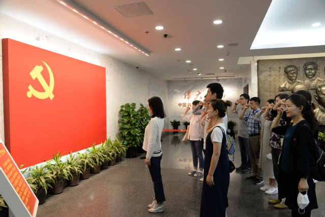 首先,全体党员列队整齐,在组织部专职组织员曹颖同志的带领下,面对纪念馆宣誓厅内悬挂着的巨幅党旗,重温入党誓词。党员们举起右拳,誓词铿锵,宣誓声响彻大厅,让现场所有人都备受振奋和鼓舞。之后,支部为上半年入党的同志过了政治生日,党支部书记徐莹同志给大家发放了党员政治生日贺卡,以此勉励各位党员牢记入党誓词,践行党的宗旨,履行党员职责,永葆党员的纯洁性和先进性,为党的教育事业做出更大贡献。随后,在讲解员的带领下,支部党员通过展厅中的照片、实物、视频资料等,真切感受到了中国共产党从萌芽状态到一步步发展壮大的艰苦卓绝的奋斗历程。支部党员一致认为,党史、新中国史不仅是中国共产党不断自我超越、奋发有为的真实记载,也是中国共产党带领中国人民迎来从站起来、富起来到强起来的生动画卷,通过学习教育,能够进一步坚定理想信念,坚定不移贯彻党的理论和路线方针政策,走好新时代的长征路。