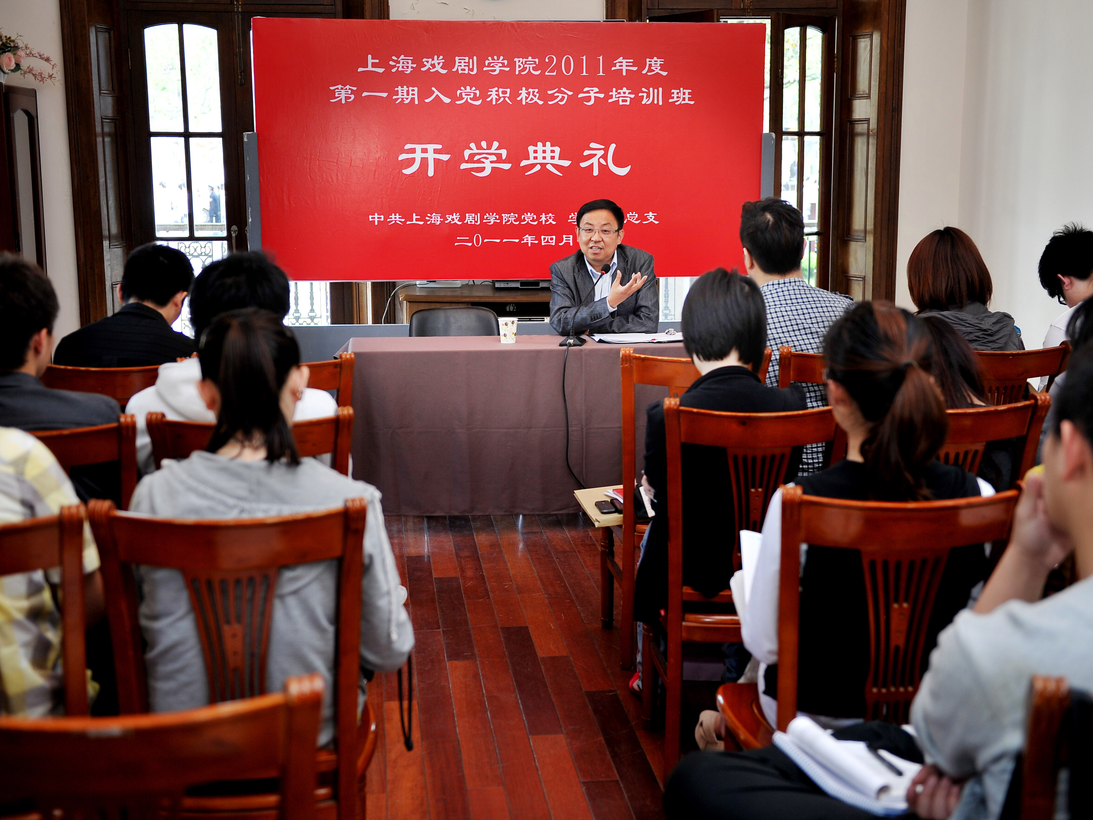 4月28日下午,上海戏剧学院2011年度第一期入党积极分子培训班开学典礼在佛西楼老干部活动室隆重举行。楼巍书记担任党校校长,并为60位入党积极分子上了第一堂入党培训课。组织部副部长彭勇文主持了典礼。