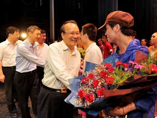 图为楼巍书记等领导对演员的表演赞不绝口