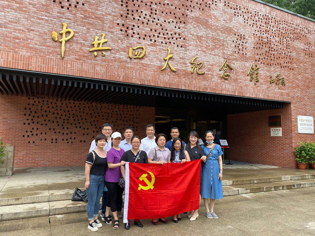 党员们随后来到位于四川北路绿地公园内的中共“四大”纪念馆。1925年1月11-22日,中国共产党第四次代表大会在上海召开。中共“四大”具有重要的意义,这是党的历史上第一次明确提出无产阶级在民主革命中的领导权和工农联盟问题。“四大”之后,全国反帝反封建的工农运动、学生运动和妇女运动得到迅猛发展。党的队伍也迅速发展壮大。中国共产党已成为全国各地革命运动的领导核心。党员们纷纷感慨,红色政权来之不易,一定要以史为镜、不忘历史、知史爱党、知史爱国。