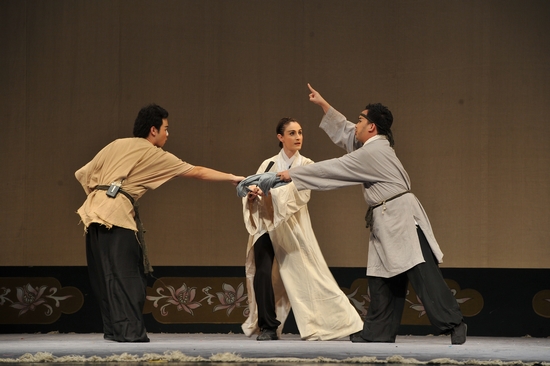 这是一场非同寻常的汇报演出。西方面孔涂上浓墨重彩,英文念白夹杂中文唱段,韩国版和美国版的“萧恩”同台竞技,伊朗版和瑞典版的“朱丽小姐”各有千秋,整场演出精彩纷呈,令人叫绝。