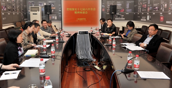 会议对党中央高瞻远瞩及时召开全会、及时提出“文化强国”建设伟大任务、及时部署文化体制改革、文化新人培育等战略任务的举措表示拥护。会议围绕学校在出人出戏方面如何贯彻落实全会精神,做好教书育人工作进行了热烈讨论,大家一致认为,学校有光荣的传统和优秀品格,在新形势下如何继承光大,值得我们进一步思考。特别是在新世纪中,社会发展对文艺工作提出了一系列新的挑战,因此如何扬长避短、进一步发挥我校优势、找出存在的问题和不足,调动广大师生员工投入工作、学习的积极性,就成为我们的当务之急。会议在这方面展开了具体研究,与会者提出了许多很有见识的意见和建议。