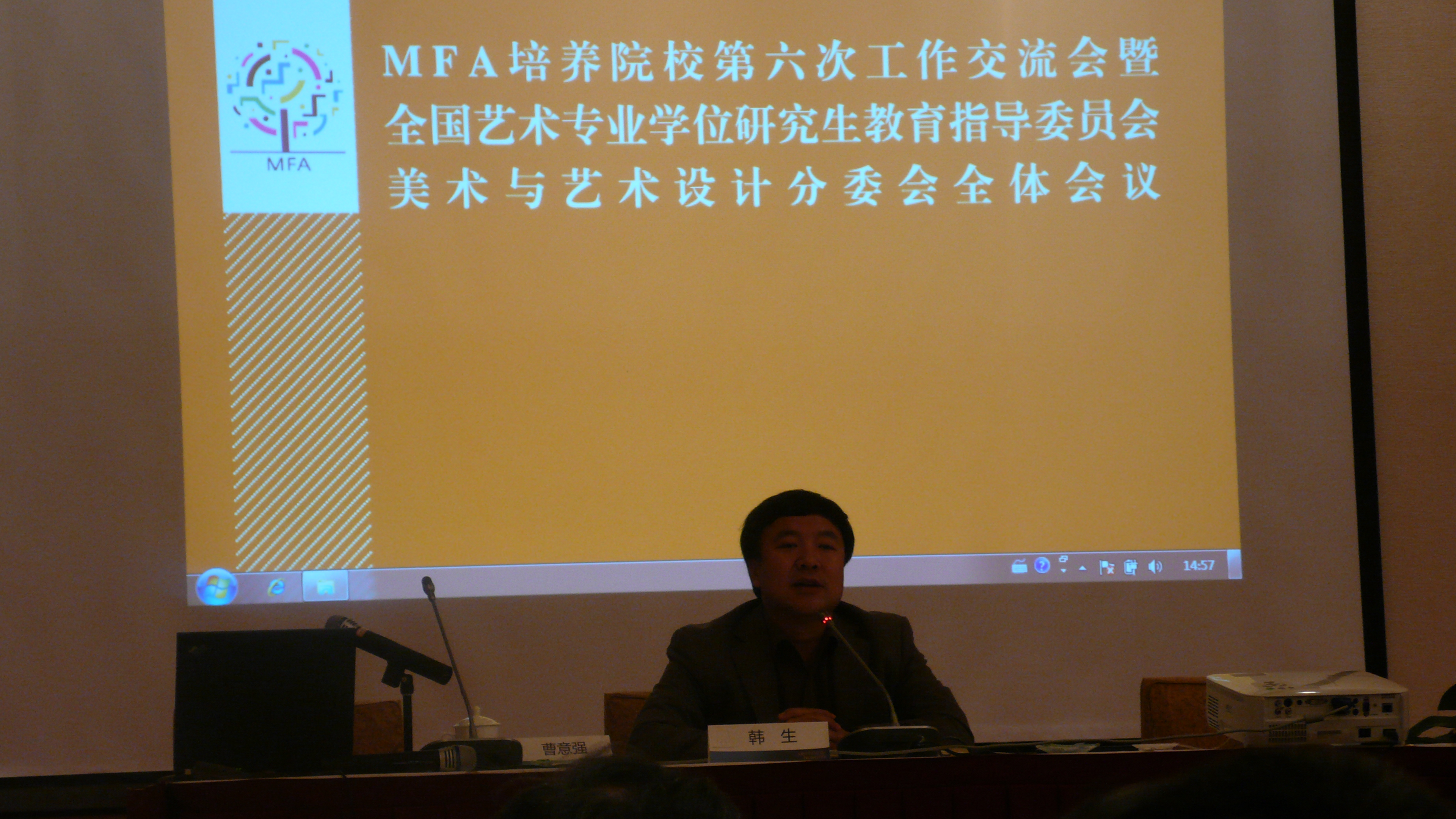 我校韩生院长出席会议,与来自全国各大美术院校、综合艺术院校和综合性大学艺术学院的近百位专家、学者,共同探讨艺术专业研究生教育培养大计。会上,韩生院长受聘为艺术硕士教指委美术与艺术设计分委会委员,并接受了聘书。