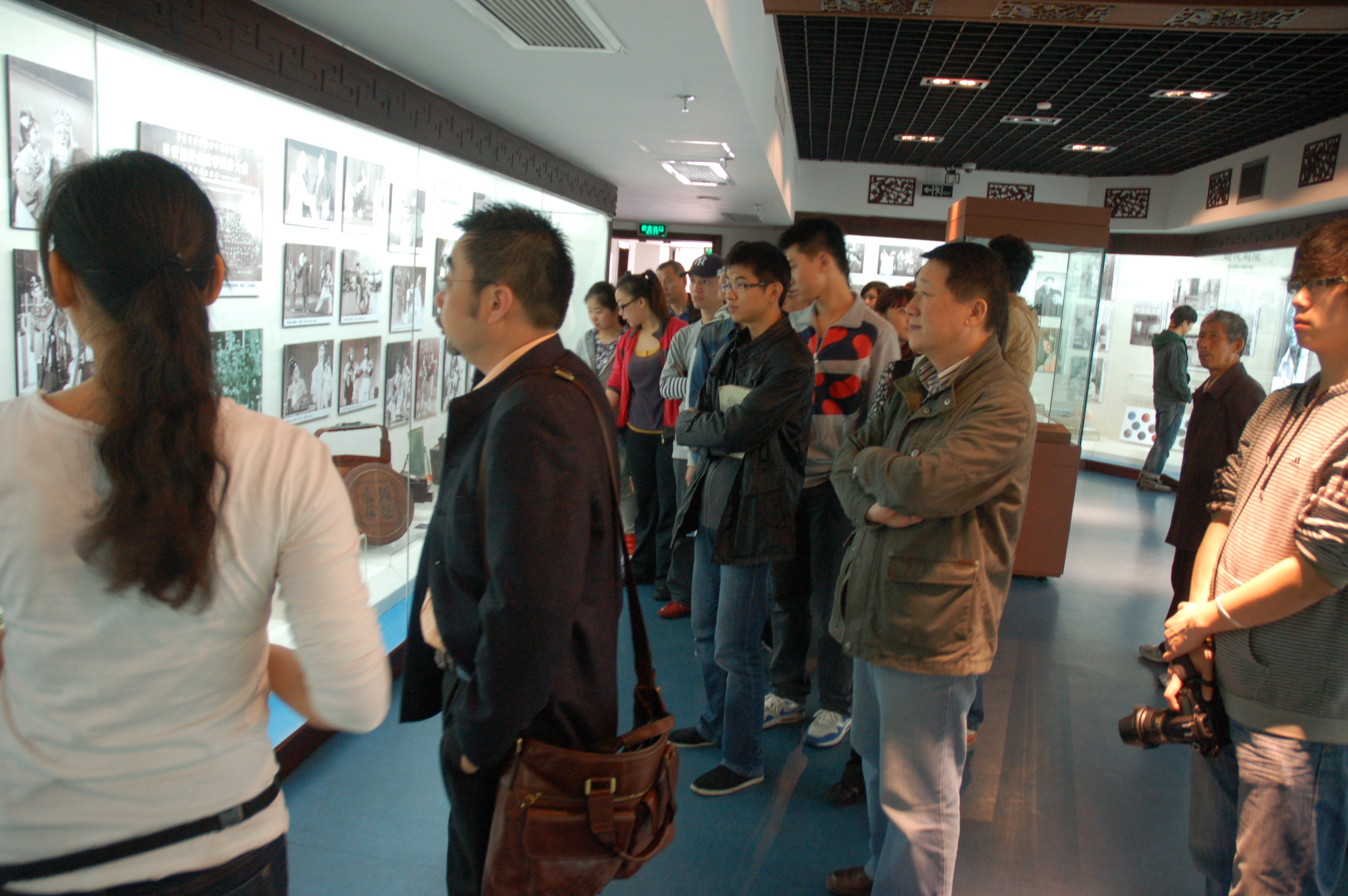 11月7日上午9时许,上海戏剧学院导演系主任卢昂老师带队,在韩再芬老师及剧院刘经理的陪同下参观了黄梅戏博物馆。博物馆坐落在安庆皖江公园内的大湖之滨,与安庆黄梅戏艺术中心连为一体,占地面积13169平方米,总建筑面积9982平方米,其中博物馆建筑面积3482平方米。钢结构的屋顶网架和玲珑剔透的玻璃幕墙,将现代建筑的明快轻盈掩映在绿树丛中,与碧水蓝天融为一体,给人以无尽的遐想。