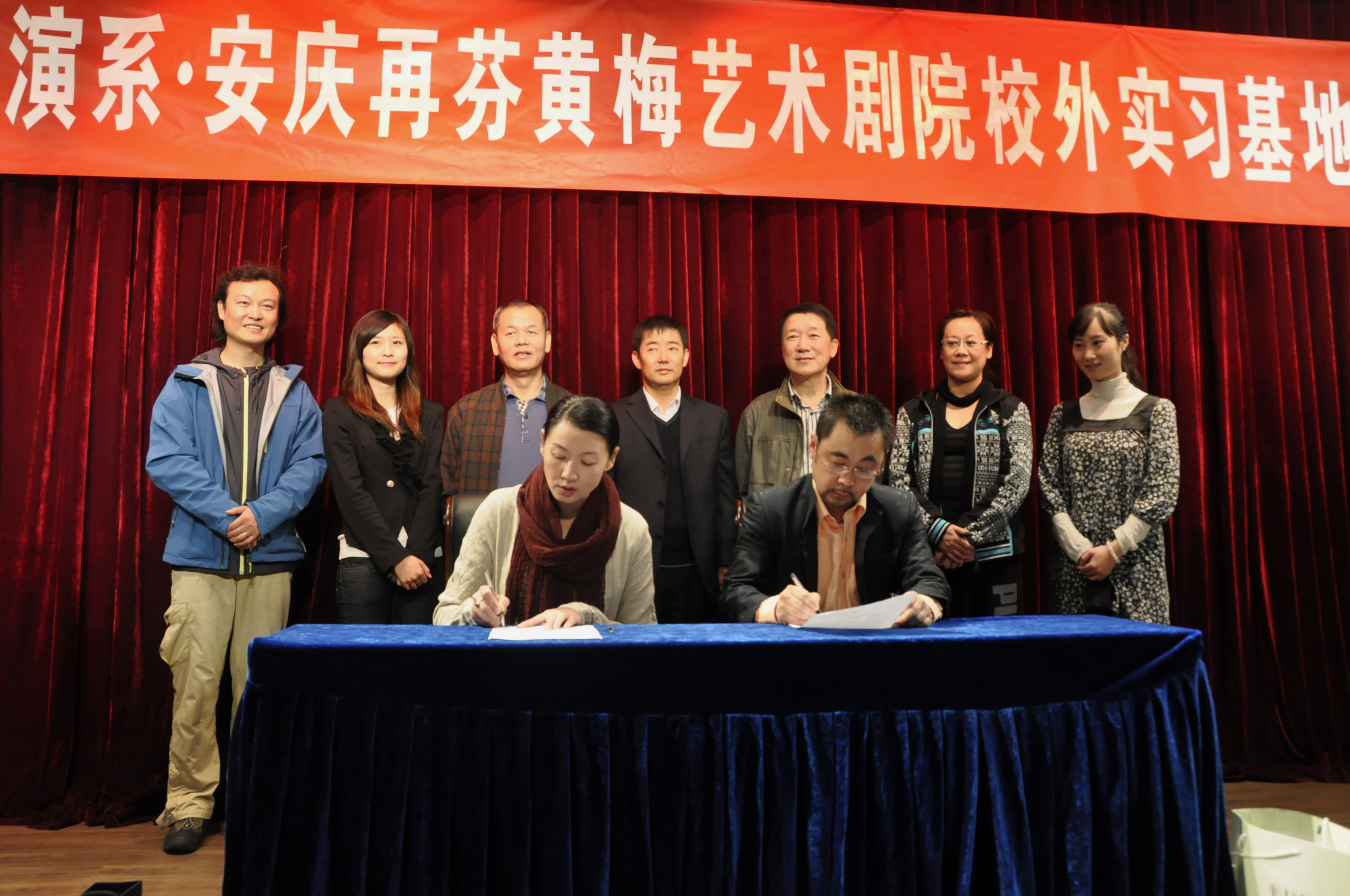 2011年11月5日至7日,导演系主任卢昂、书记眭慕蛟带领导演系师生代表,赶赴安徽省安庆市,到安庆再芬黄梅艺术剧院交流,建立校外实习基地,并洽谈商定了一系列学生基地的实习活动安排。本次合作响应了市教委关于“创建校外实习基地”的工作通知,与再芬艺术剧院进行平等协作,旨在拓展导演系学生的戏剧创作实践机会与锻炼的平台,丰富学生的艺术创作实践经历。