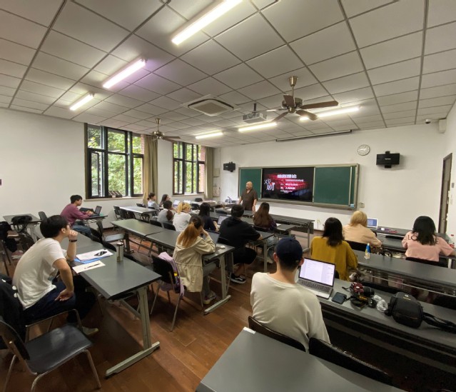 第三部分“人物形象”则是顺应着第二部分,为了让同学们更加形象地了解人物台词该如何表达,孟冰老师请3位同学上台朗读了自己作品的片段,并在最后亲自上场示范朗读,绘声绘色,感染力十足。孟老师朗读到动情处,甚至大有为之痛快哭一场的感觉,场下学员无一不仔细聆听,在朗读完成后,同学们报以热烈的掌声。在这个过程中,孟冰老师对于戏剧创作技巧的熟练掌握以及情感的投入都让同学们对于编剧创作充满了信心,期待日后能同孟冰老师一样成为一名优秀的编剧。