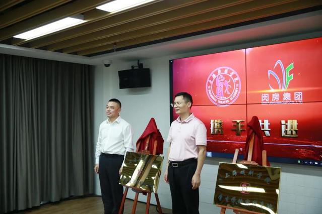 上海戏剧学院党委副书记、副院长张伟令与闵房集团党委书记、董事长阳勇建共同为两个基地揭牌。(文、图:闵房集团 编辑:榕树)