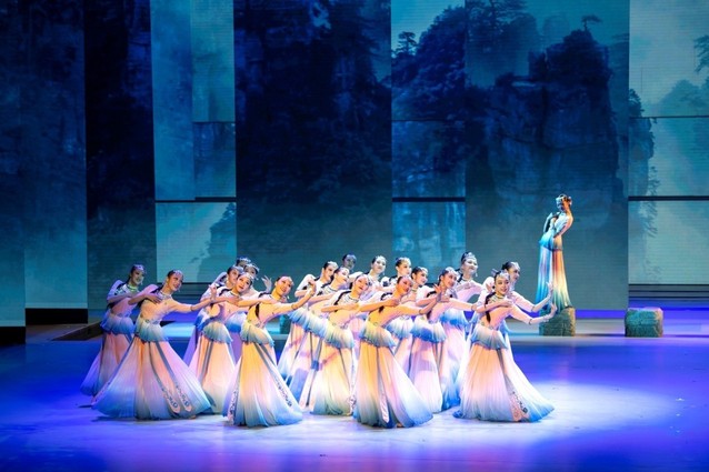 以全面反映湖南精准扶贫历程为题材的大型史诗歌舞剧《大地颂歌》近日在湖南长沙梅溪湖国际文化艺术中心首演。该剧由中共湖南省委宣传部主办,湖南省演艺集团、湖南广播影视集团等联合出品,上海戏剧学院舞蹈学院24位同学受邀赴长沙参演其中的舞蹈《马桑树儿搭灯台》。