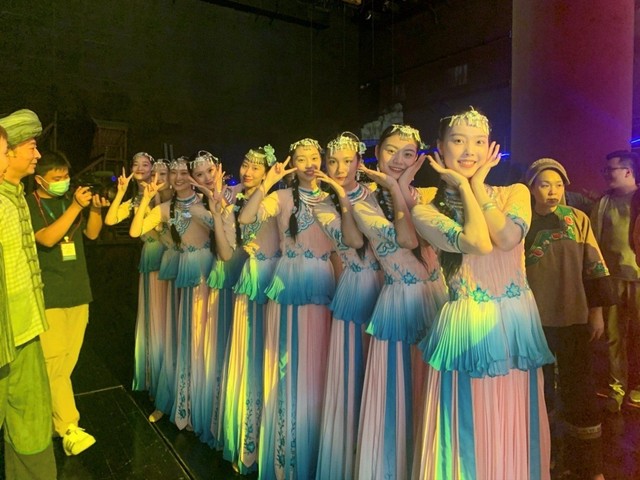 师生们在收到关于演出的指示后,第一时间统计筛选参演人员名单,确认参演人员后,学院立马组织学生们购买各地直达长沙的车票与机票,体现了学院各级领导干部及老师一贯雷厉风行的高效作风。24位中国舞的同学在杨新华副院长、带队老师刘建明的带领下于9月1号从全国各地抵达长沙,紧接着9月2号投入紧张、高效的排练当中。第一天学动作,第二天排队形,第三天上舞台连排,这些都考验着我们上戏学子的舞台应对能力与高效快速的学习能力。学院也选派燕晓霞、刘震杰、曾逊倪等专业老师先后前往长沙负责学生日常的专业教学和排练工作。