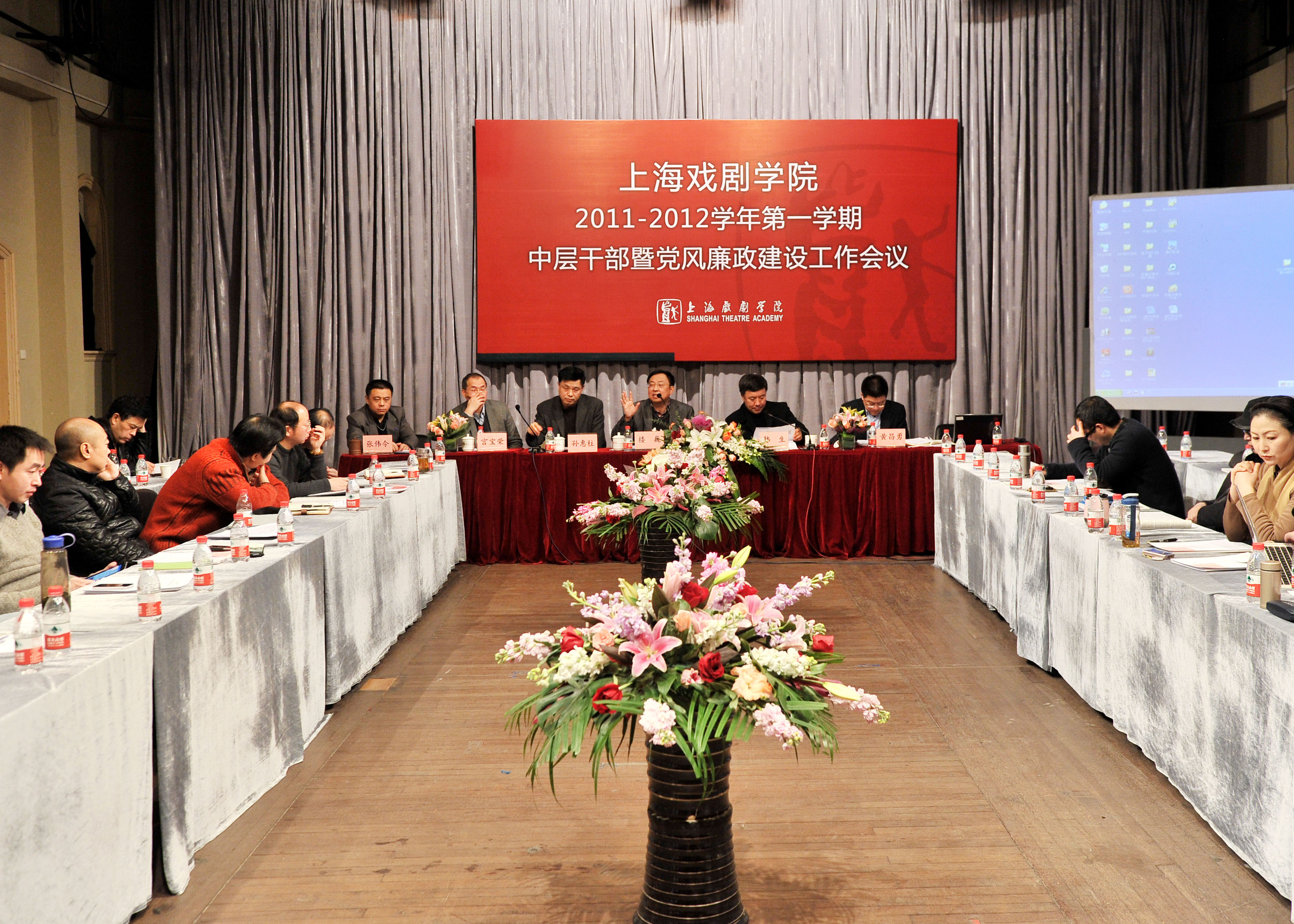 1月13日,我校在新空间剧场举行期末中层干部会议。党委书记楼巍主持会议,院长韩生在会上作年度行政工作总结报告。副院长孙惠柱、黄昌勇、宫宝荣、张伟令出席会议并就各自分管的工作作了年度总结。
