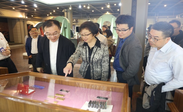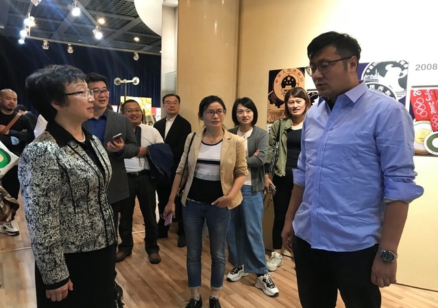 上海造币有限公司党委书记刘科、宣传部部长黄超向到访的上戏、上音人员介绍中国造币发展史以及博物馆情况。