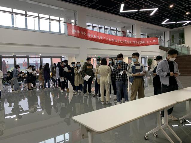虹桥路校区的同学们紧随其后,在签到点逐一签到。