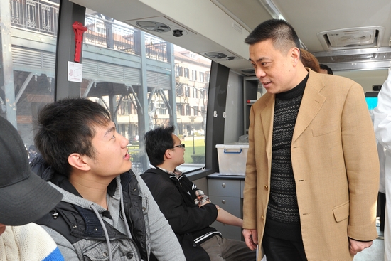 上午8点,献血志愿者们就在指定地点开始了准备工作。规定时间还没到,很多同学就已经聚集到了确认点前,领取并填写相关表格;献血车上,准备工作也在有条不紊的进行。8点半一到,献血正式开始,体检合格的同学依次走上献血车去奉献爱心,在他们中间,有很多同学已经是连续几年参与无偿献血,来自舞美系的学生党员周冰玫已经是第三次献血了,第一次是刚入大学,第二次是完成世博女兵服役退伍时,这一次是在毕业前,她说要用无偿献血这种公益行为来记录自己成长的每一个时刻。