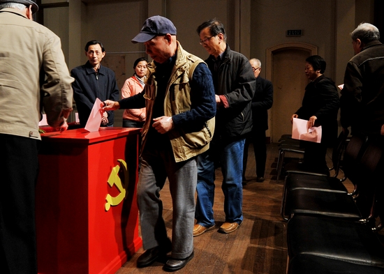 图为与会代表进行无记名投票