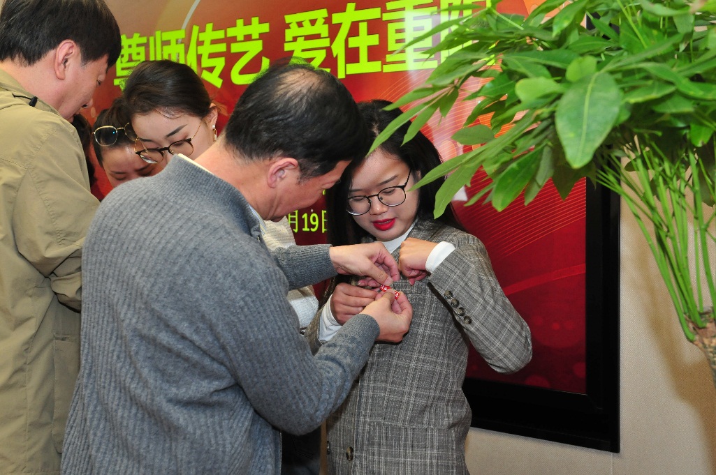 之后,舞蹈学院各位老领导和专家为新进青年教师佩戴了校徽,并给予了谆谆教诲和殷切期望。他们希望舞蹈学院现任领导班子及中坚力量要发挥“传帮带”作用,传承干事创业精神,悉心培育新人,团结带领广大教职工继续攀登新的高峰;年轻一代教师生逢其时又重任在肩,要秉承至善至美的上戏精神,承载前辈们的希望和舞院人的使命与荣光,不断开创舞蹈学院新的局面。