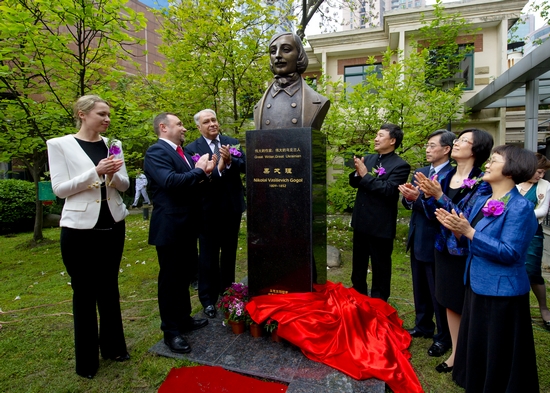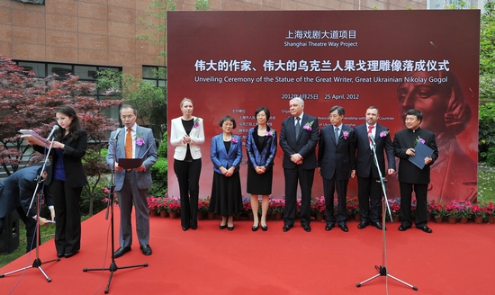 出席雕像落成仪式的乌方代表有乌克兰驻华大使尤里•瓦西里耶维奇•科斯坚科、乌克兰驻上海总领事谢军、乌克兰-中国协会副主席奥克萨娜•奥斯马奇科、乌克兰雕塑家奥莱克桑德拉•鲁班;中方代表有上海市人民对外友好协会常务副会长汪小澍、上海戏剧学院院长韩生、静安区人民政府副区长夏以群。双方代表共同为果戈理雕像揭幕。出席本次揭幕仪式的嘉宾还有上海市妇女联合会主席张丽丽、副主席黎荣,中共静安区委宣传部副部长、静安区文化局党委书记、局长张爱华等。仪式由上海戏剧学院副院长宫宝荣主持。