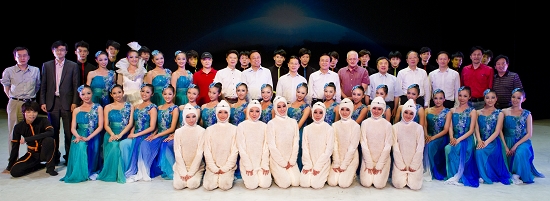 图为演出结束后领导与演员合影