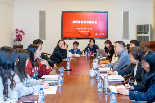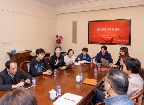 2020年11月12日下午,上海戏剧学院在佛西楼二楼会议室举办《习近平新时代中国特色社会主义思想概论》课程开课师生研讨会暨思想政治理论课师生座谈会。校领导谢巍、胡敏、周银娥,思想政治理论课教师及20名学生代表参加了研讨会。