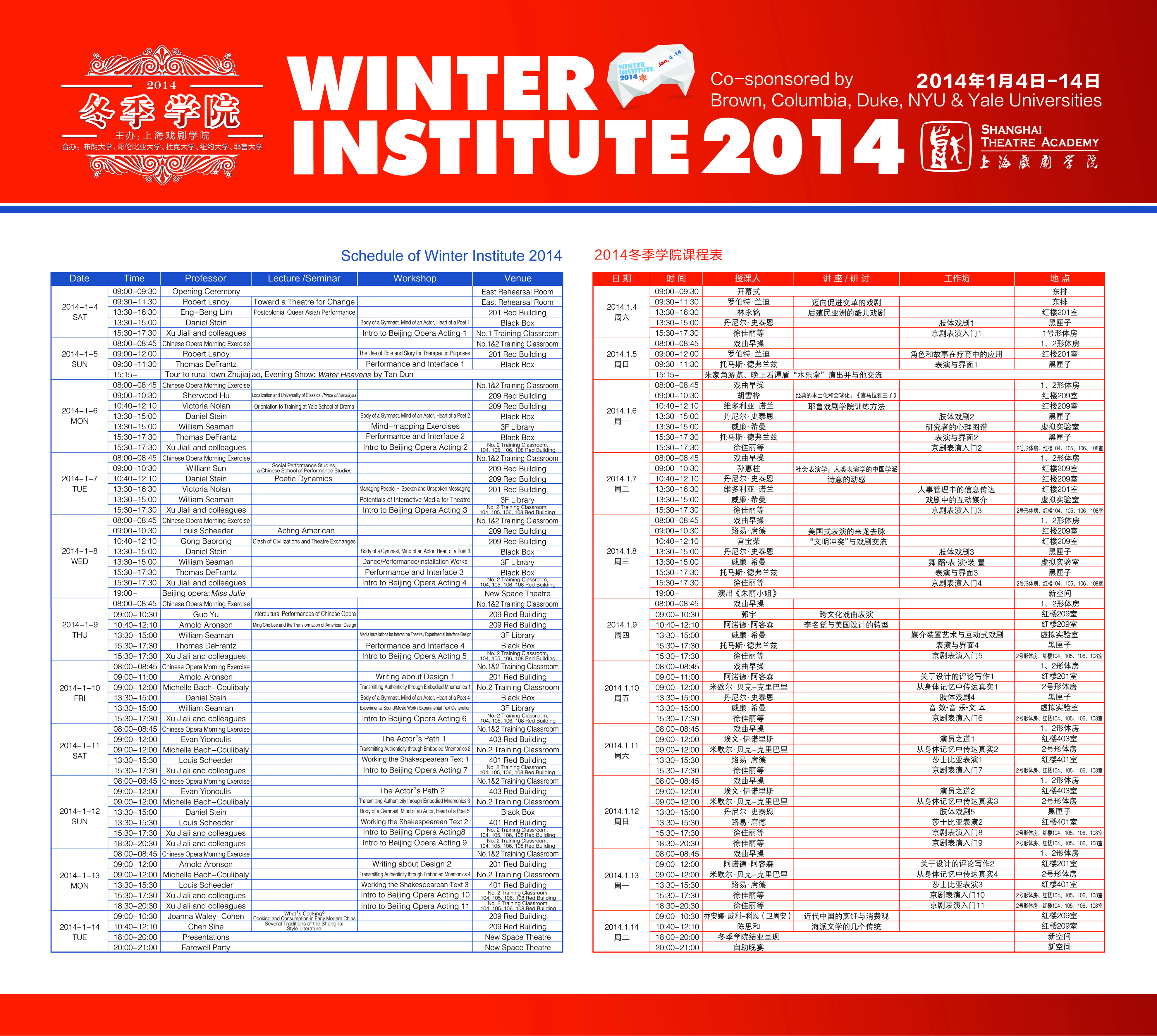 冬季学院的讲座、研讨会和工作坊的内容涵盖: