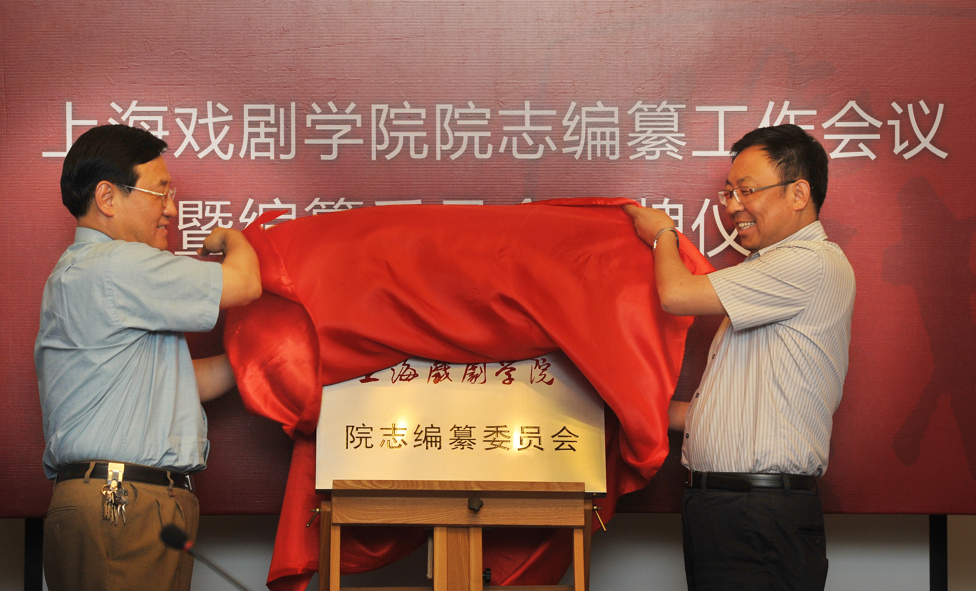 上海戏剧学院“院志编纂工作会议暨揭牌仪式”于2012年7月12日在佛西楼召开。上海戏剧学院党委书记楼巍、院长韩生,上海市地方志办公室主任朱敏彦、处长黄晓明出席了会议,会议由上海戏剧学院党委副书记胡敏主持。