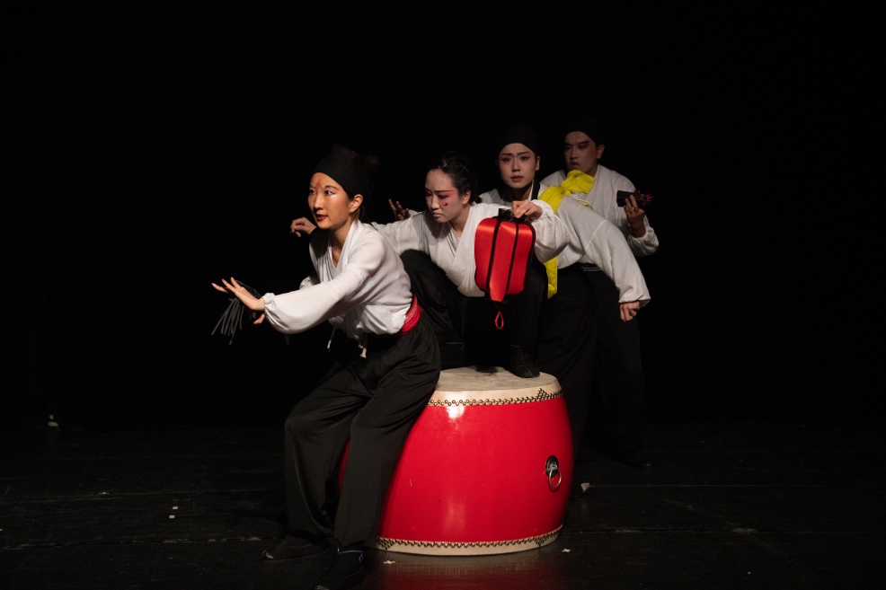 在指导教师常佩婷老师的带领和卢昂教授、吴泽涛教授的谆谆教诲下,团队成员通力合作,完成了一出颇有中国传统意蕴的作品。团队成员具有不同的本科专业学习背景,如戏剧导演、戏曲表演、戏剧表演、数字交互艺术、广播电视编导、数字媒体艺术、戏剧影视文学、核工程与核技术、法律、戏剧教育、古典文献、知识产权、软件工程、播音主持等专业。大家出于对戏剧的热爱聚集在上海戏剧学院,开始了导演研究生的学习,该剧为此班级入校后的第一部原创戏剧作品。所有导演演员、视频拍摄后期剪辑团队、翻译校对均为该班级学生。
