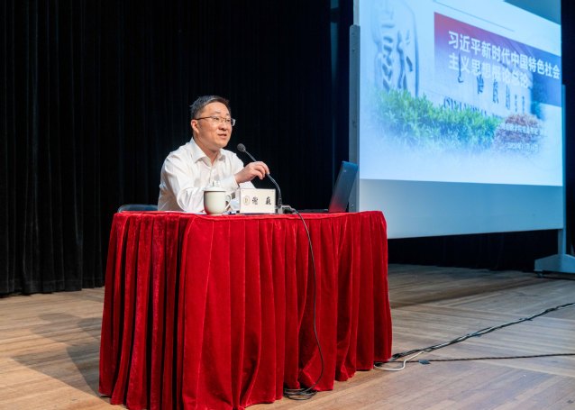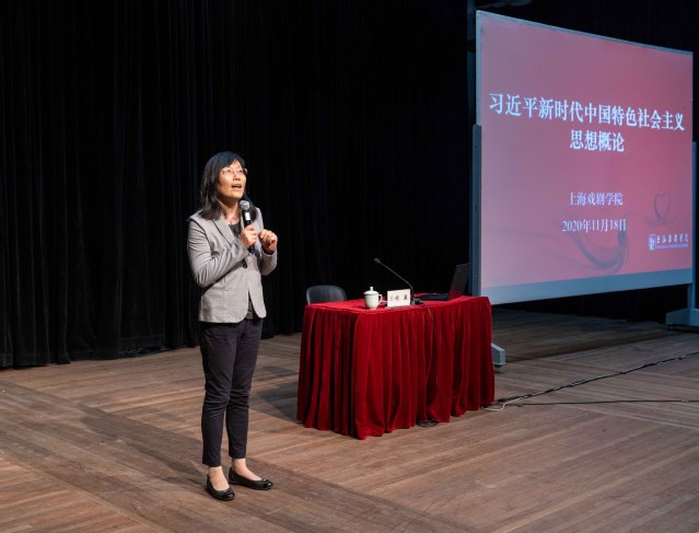 2020年11月18日下午,《习近平新时代中国特色社会主义思想概论》课程在华山路校区新空间剧场正式开讲,课程第一讲的主讲人是我校党委书记谢巍,学校部分党政领导班子成员、相关部门负责人、马克思主义学院全体教师、辅导员代表及2020级戏文系、舞美系学生参与了本次课程学习。