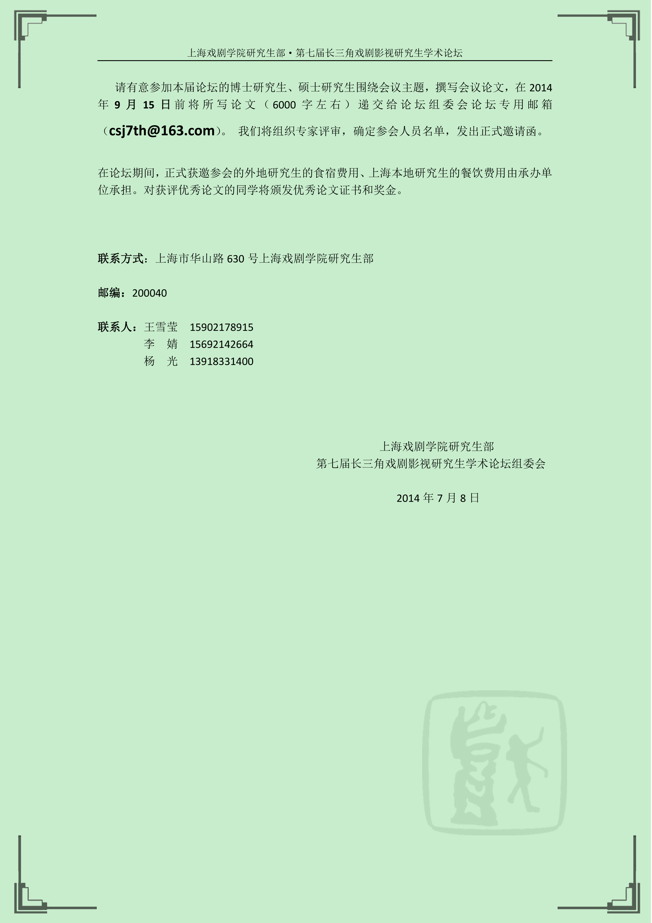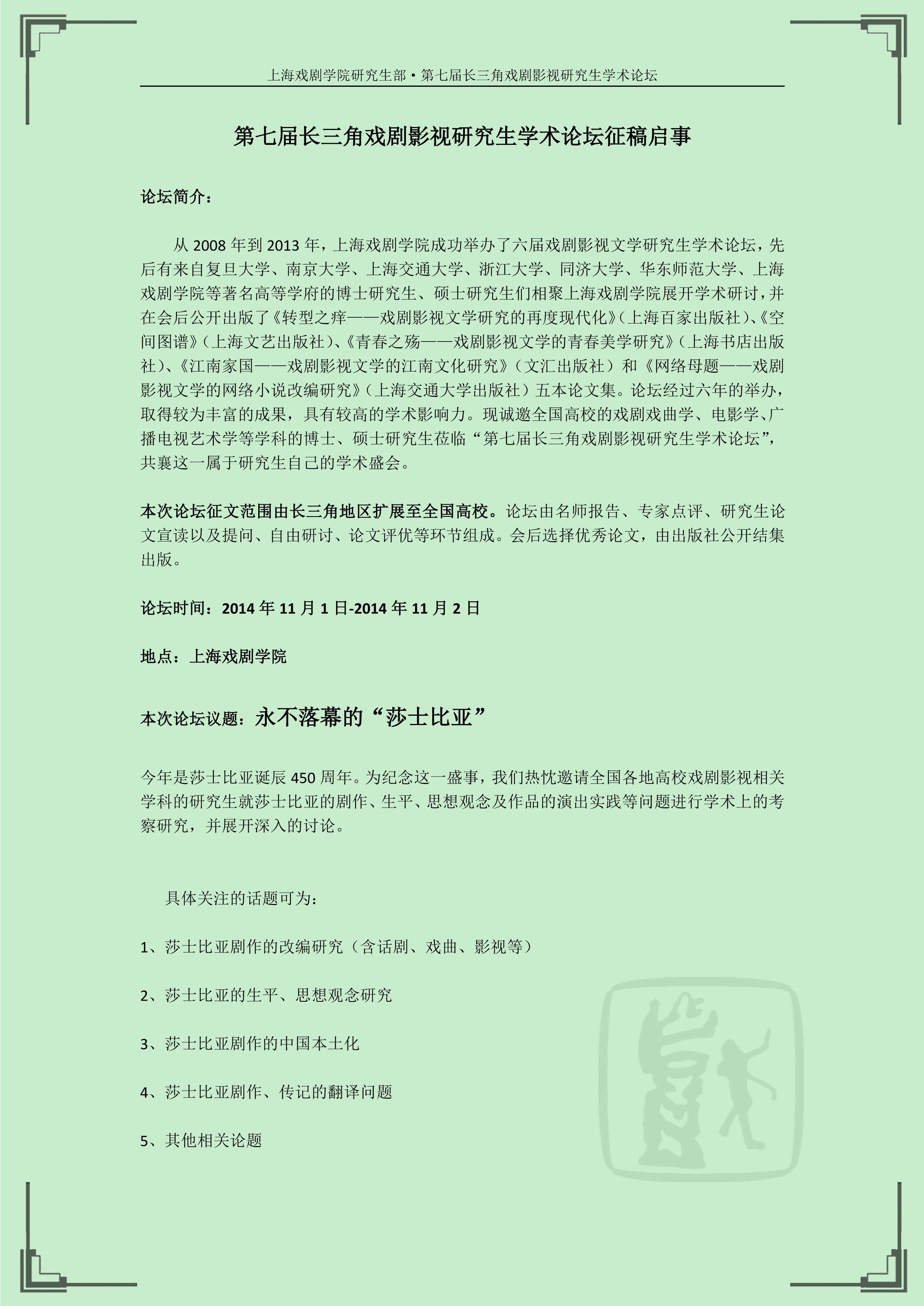 第七届长三角戏剧影视研究生学术论坛征稿启事